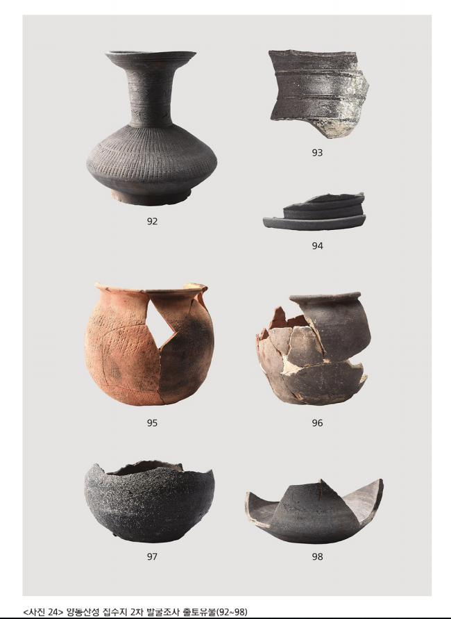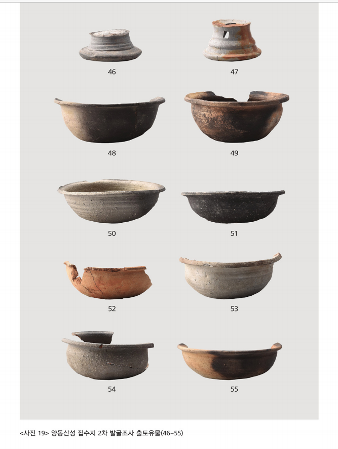 7. 마지막으로 양동산성 집수지유적에서는 기와가 발굴되지 않았다는 점이 특이하다. 이것은 집수지의 사용 기간이 길지 않았다는 것을 의미한다고 볼 수 있다.